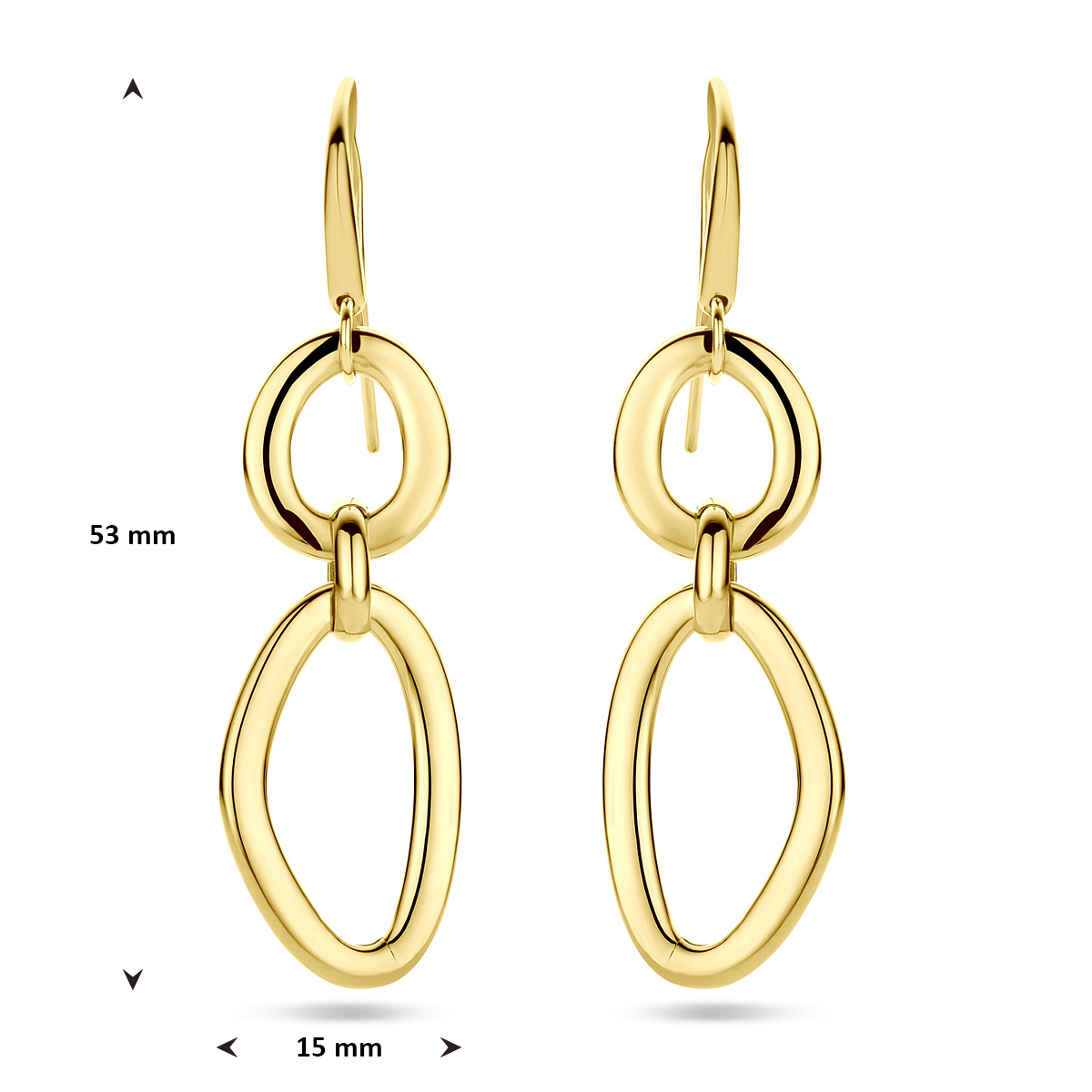 14k Geelgouden oorhangers met een totale hoogte van 53mm.